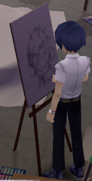 [but oh, shit, he's on display now, the subject of Ryuji's handheld framing device. quick, do something artsy and profound and suave! something to really ruffle the feathers of artistic elites. get them really chattering, trying to find meaning behind every single horribly pixelated Sweet Bro or Hella Jeff that he's ever rendered.]